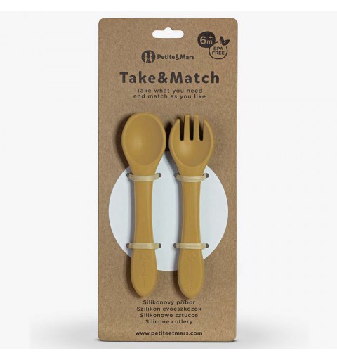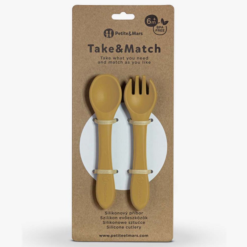 Petite& Mars Take&Match - silikonowe sztućce 6m+ | Intense Ochre