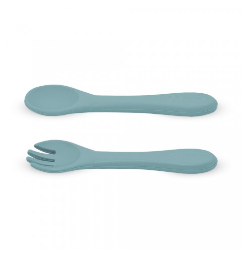 Zestaw składający się z widelca oraz łyżeczki został wykonany w całości z silikonu spożywczego bez BPA. Dzięki temu dziecko może jeść za pomocą sztućców pokarmy zarówno ciepłe, jak i zimne. Elastyczny silikon sprawia, że sztućce doskonale nadają się do wrażliwych dziąseł małego dziecka. Przeznaczone są dla małych dzieci od 6 miesiąca życia, którym wprowadza się rozszerzoną dietę oraz takich które z powodzeniem uczą się już samodzielnego jedzenia. Zaokrąglone kształty i niewielkie rozmiary ułatwiają małemu dziecku nabieranie i spożywanie pokarmu.
