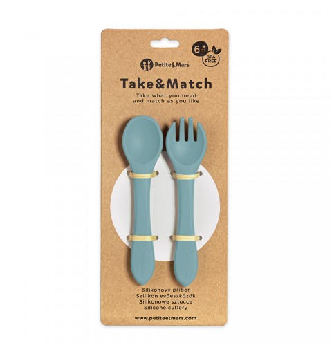 Petite& Mars Take&Match - silikonowe sztućce 6m+ | Frosted Sky