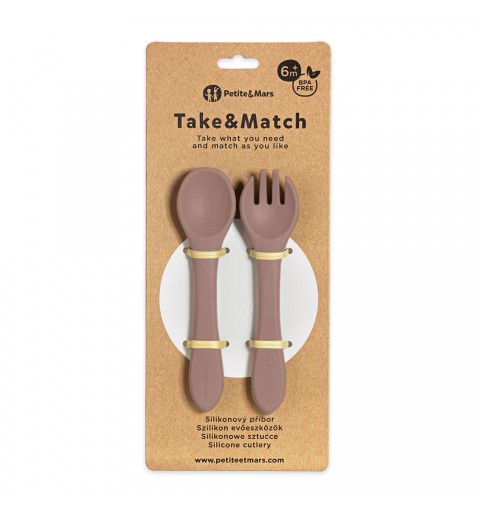 Petite& Mars Take&Match - silikonowe sztućce 6m+ | Velvet Latte