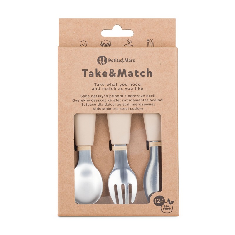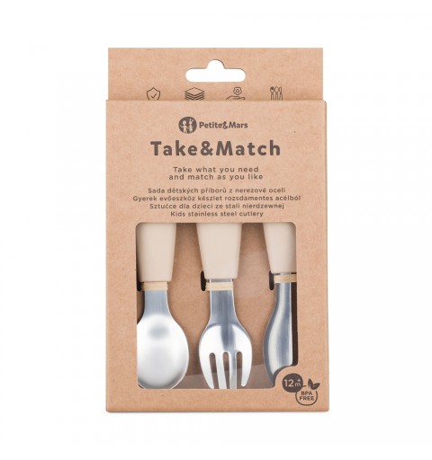 PETITE&MARS Sztućce dla dzieci z nierdzewnej stali z silikonową rączką Take&Match 12m+
