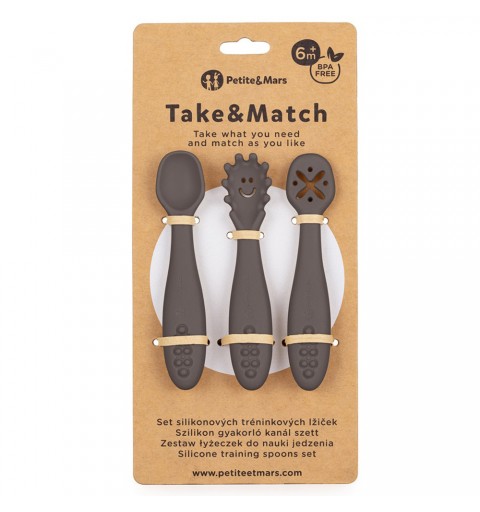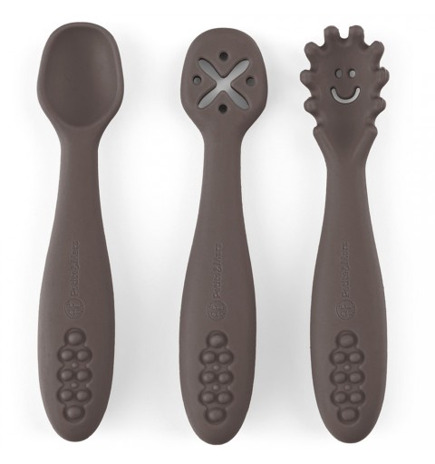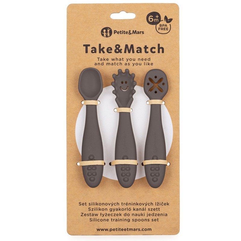Petite& Mars Take&Match - Zestaw silikonowych łyżeczek do nauki jedzenia 3 szt. 6m+ | Bitter Cocoa