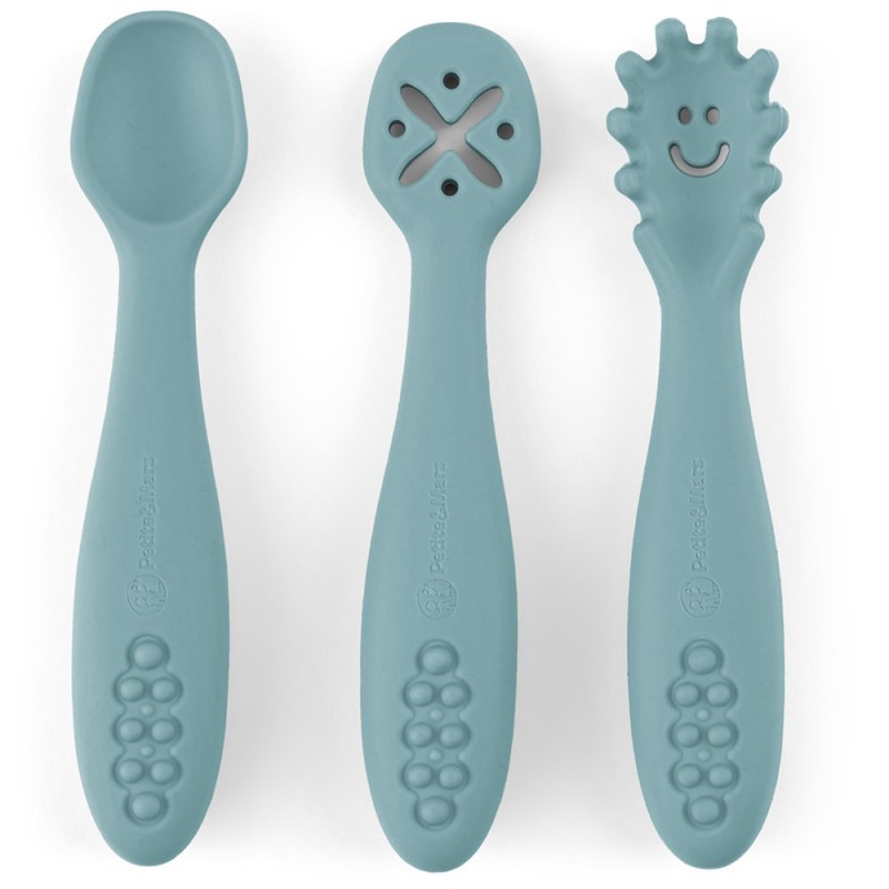 Petite& Mars Take&Match - Zestaw silikonowych łyżeczek do nauki jedzenia 3 szt. 6m+ | Frosted Sky