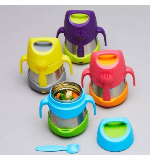 Termos b.box wykonano ze stali nierdzewnej, która nie wchodzi w reakcję z produktami spożywczymi. Świetnie utrzymuje temperaturę i jest bardzo higieniczna oraz wytrzymała. Silikonowe elementy nadają całości przyjemny design idealny dla dzieci w różnym wieku. Termos świetnie się prezentuje i jest bardzo funkcjonalny a przy tym łatwy w użyciu, by dzieci nie miały kłopotu z samodzielnym korzystaniem z niego.