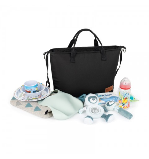 Wypady poza dom będą o wiele łatwiejsze dzięki tej praktycznej i funkcjonalnej torbie dla mamy. Torba jest wystarczająco pojemna, aby pomieścić wszystko, czego potrzebujesz dla swojego dziecka. Trzy wewnętrzne kieszenie pozwolą Ci zachować porządek w torbie i posłużą jako mały organizer, dzięki czemu zawsze znajdziesz to, czego potrzebujesz. Torbę można łatwo zamknąć za pomocą zamka błyskawicznego. Dzięki paskowi na ramię możesz zawiesić torbę na rączce wózka, ale także na ramieniu jako torbę na ramię. Pasek jest regulowany, dzięki czemu można go dopasować do każdej sylwetki. Tatusiowie z pewnością docenią uniwersalny kolor torby. Torba wykonana jest z wysokiej jakości materiału, który jest odporny na różne warunki atmosferyczne. Materiał jest bardzo łatwy do czyszczenia.