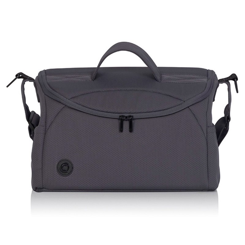 Torba zawieszaną na prowadnicy wózka - jest wyposażona w system mocować do wózka i pas naramienny. Posiada ona formę eleganckiego kuferka, który po całkowitym rozsunięciu wszystkich suwaków, zmienia się w matę do przewijania dziecka.