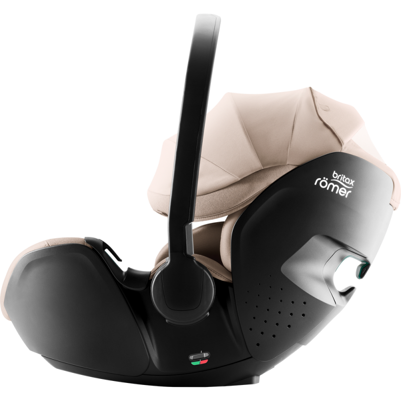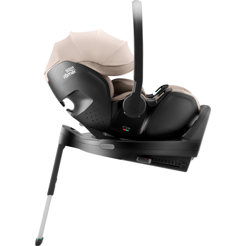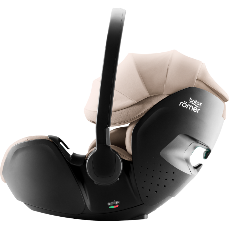 Montując nosidełko na bazie VARIO BASE 5Z w samochodzie lub na wózku, użytkownik słyszy wyraźne kliknięcie, które potwierdza poprawność umocowania nosidełka BABY-SAFE PRO. Dodatkowo, wskaźnik na przycisku zwalniającym, który znajduje się na bazie, zapewnia większe poczucie spokoju.