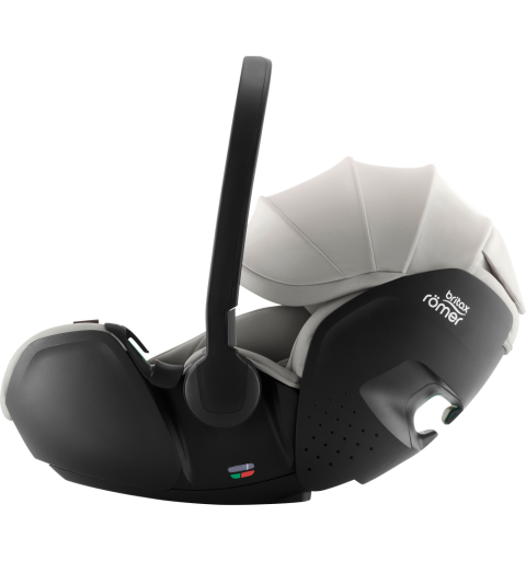 Montując nosidełko na bazie VARIO BASE 5Z w samochodzie lub na wózku, użytkownik słyszy wyraźne kliknięcie, które potwierdza poprawność umocowania nosidełka BABY-SAFE PRO. Dodatkowo, wskaźnik na przycisku zwalniającym, który znajduje się na bazie, zapewnia większe poczucie spokoju.