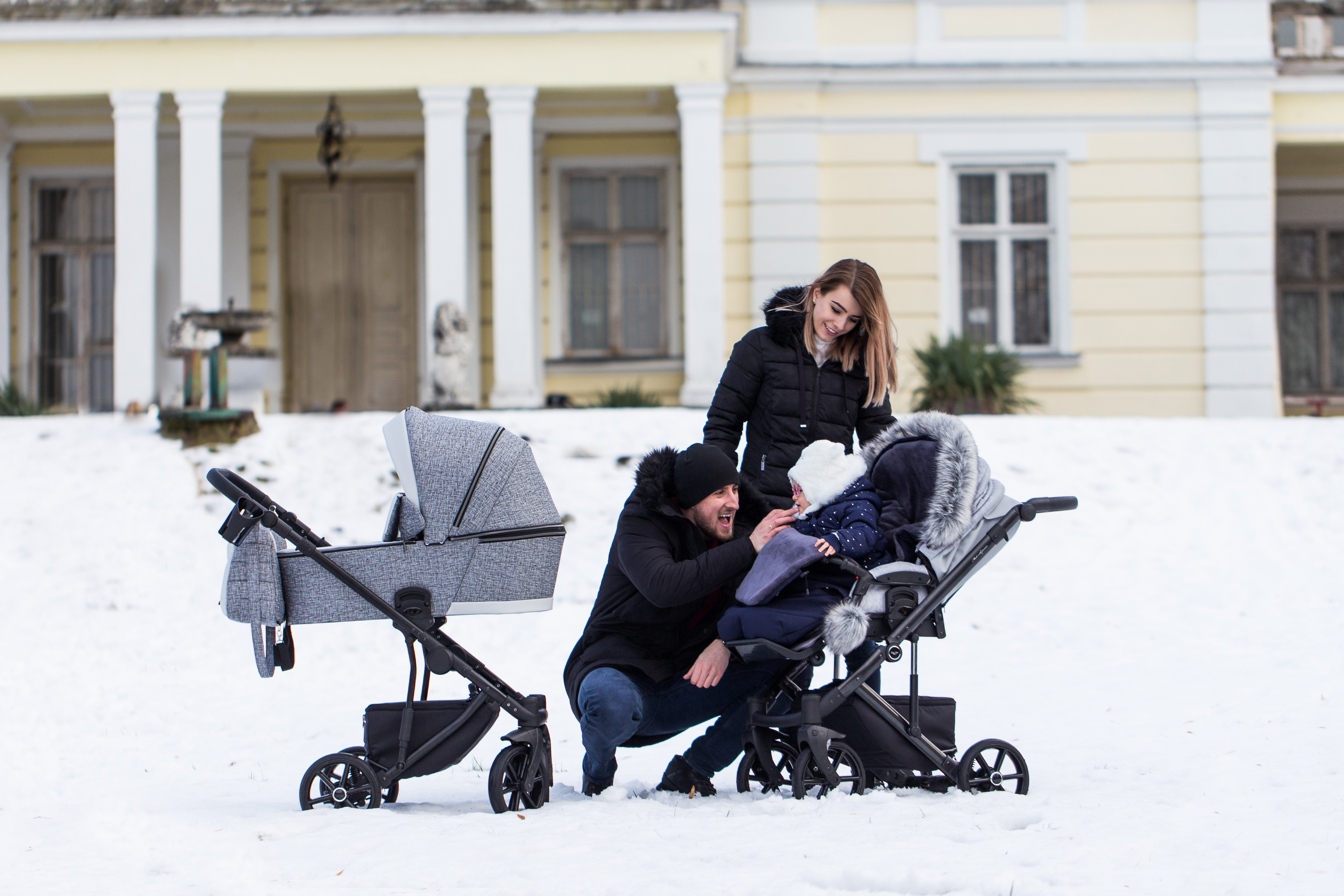 - Mufki montowane na prowadnicy wózka dla komfortu spacerowania chłodniejszą porą roku