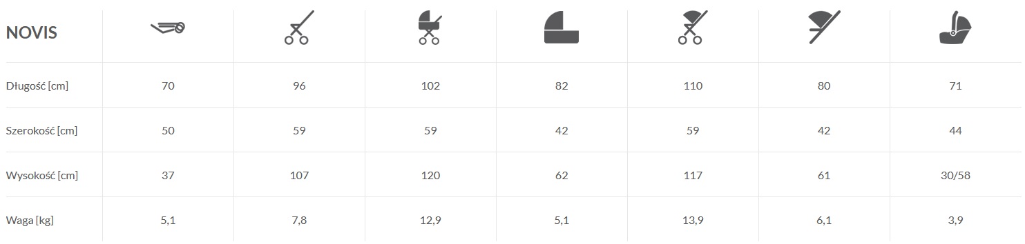 Wymiary wózka - z gondolą (dł. x szer. x wys.)
