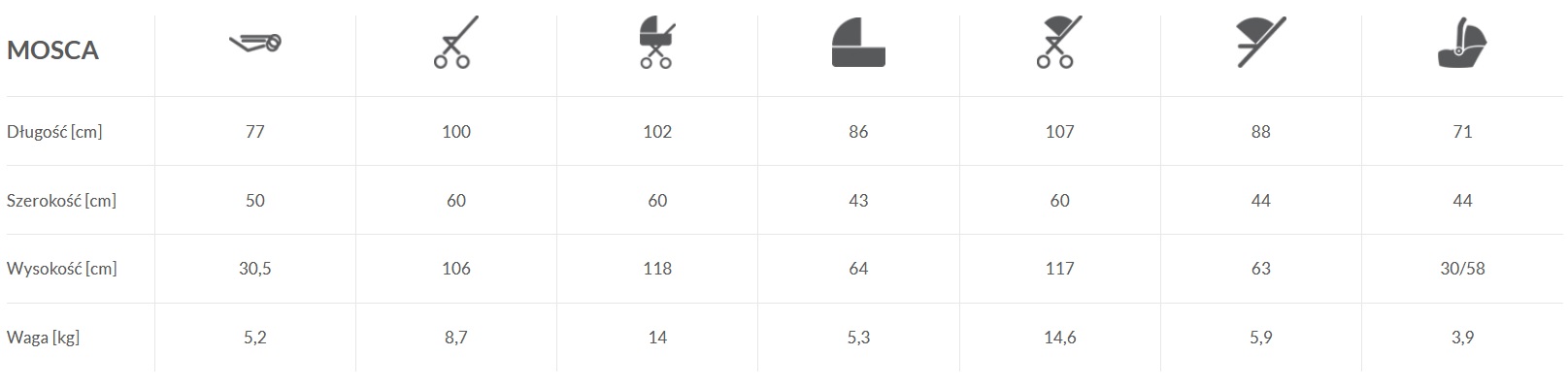 MOSCA to kolekcja wyjątkowo lekkich wózków, które po złożeniu zajmują mało miejsca ,mieszcząc się w najmniejszym bagażniku. Konstrukcja i wyposażenie tworzą wózek bardzo wygodnym i bezpiecznym. Oferuje wszystko, czego potrzebujesz do komfortowego i bezpiecznego przewożenia dziecka.