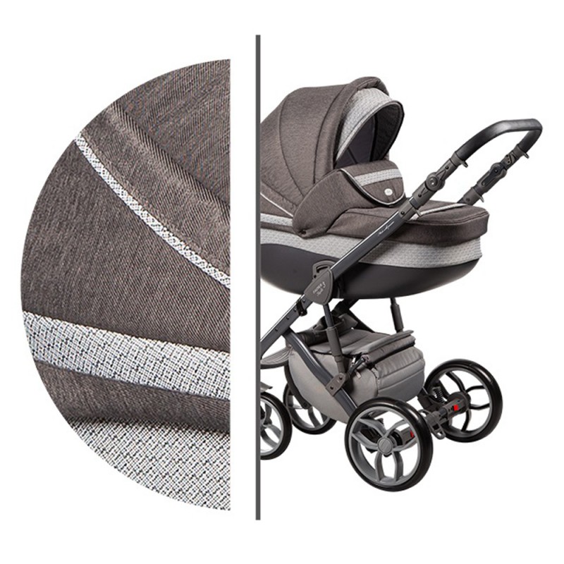 - Możliwość wpięcia gondoli , spacerówki oraz fotelika samochodowego