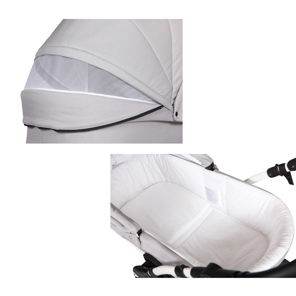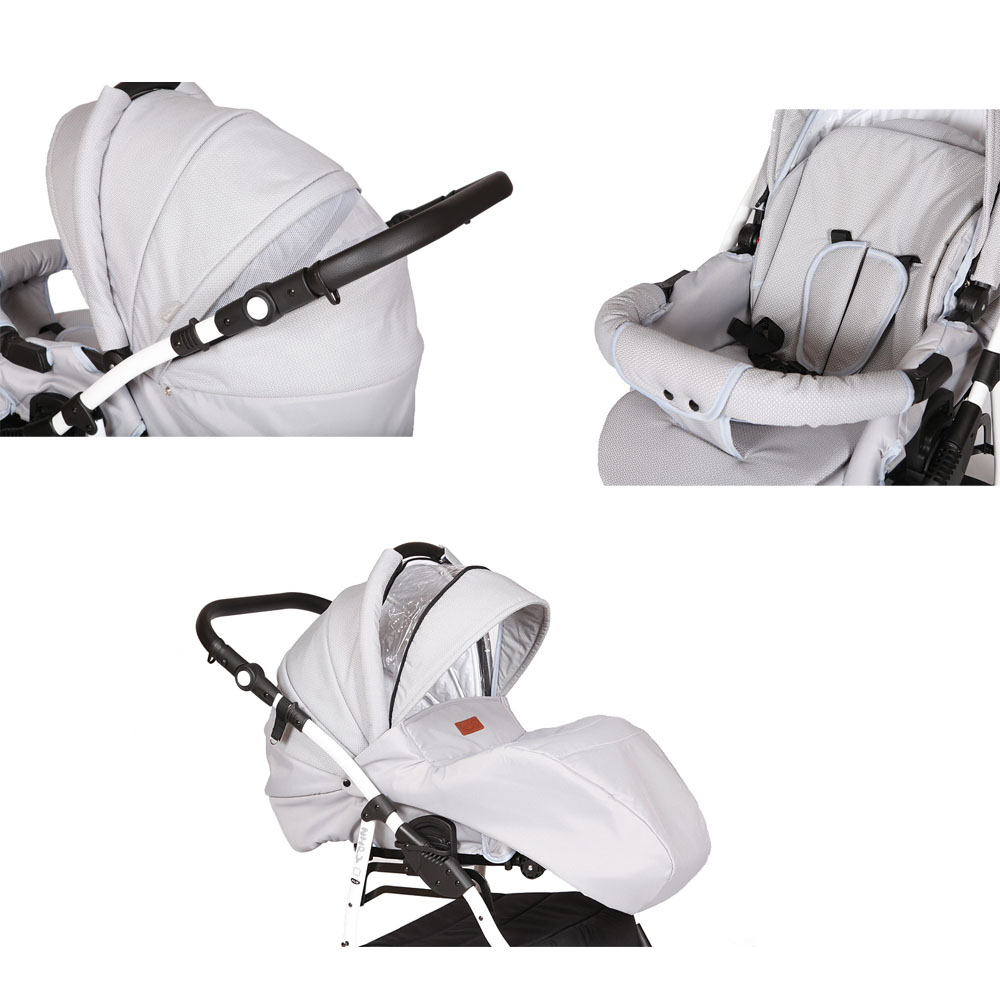 - Możliwość wpięcia gondoli , spacerówki oraz fotelika samochodowego