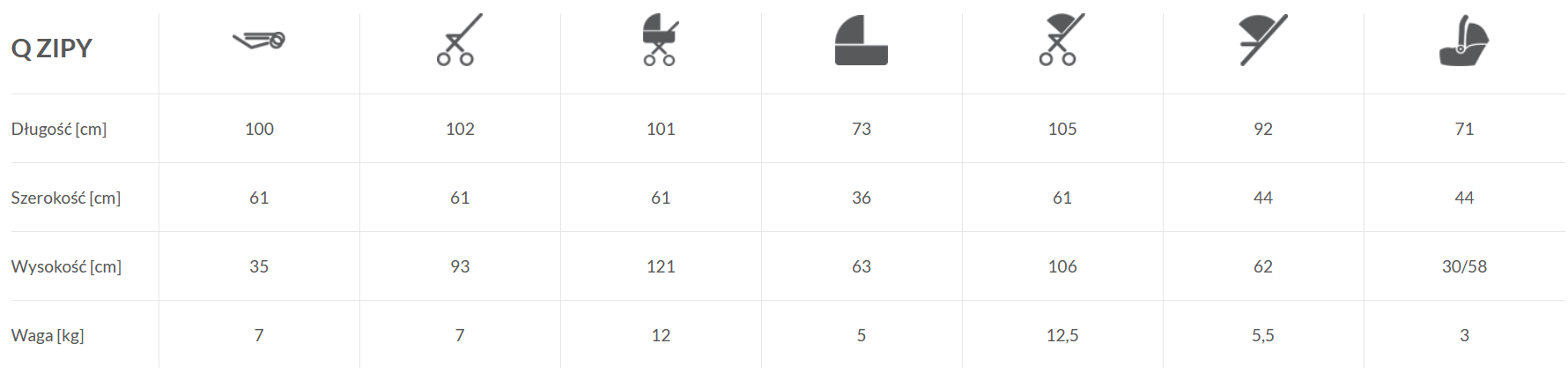 Wymiary wózka - z gondolą (dł. x szer. x wys.)