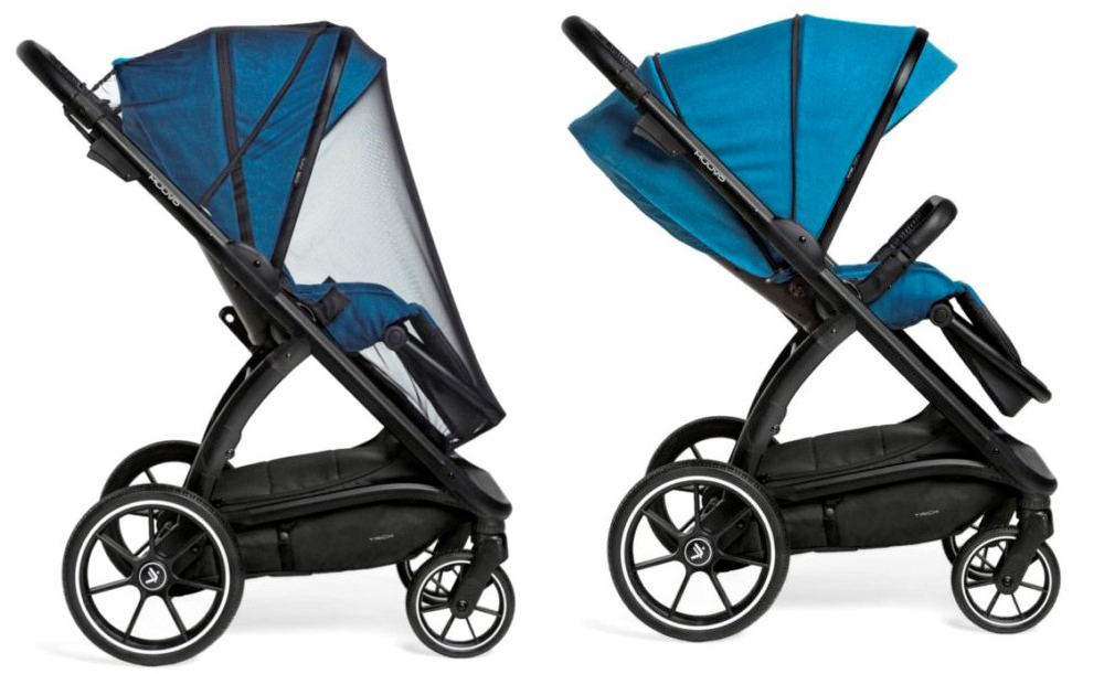 Duża budka pozwala na zasłonięcie dziecka przed niechcianym słońcem i wiatrem. Sekcja odsuwana na zamek dodatkowo odsłania wentylację która połączona z oryginalną moskitierą dostarcza dziecku idealną porcję świeżego powietrza a zarazem chroni przed insektami.