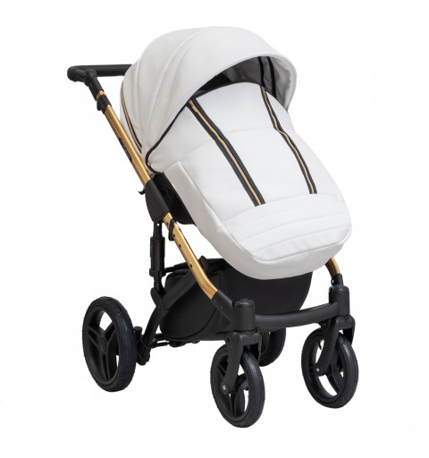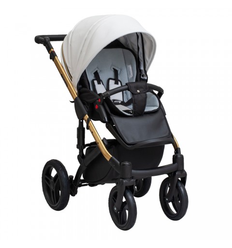 Gondola z najmodniejszą strukturą w 2022r. występująca w 3 wariantach kolorystycznych złota, srebrna i czarna.Charakteryzuje się lekkością, wykonana z ABS-u. Designerska, wytrzymała konstrukcja wykonana z aluminium z wyciąganymi „ośkami”, dzięki czemu można całkowicie zdemontować wszystkie koła wraz z nimi. Stelaż z wykonanymi bocznymi frezami dostępny w 2 kolorach – srebrno-czarny i złoto-czarny. Łatwy i praktyczny system składania stelaża do małych rozmiarów – do pozycji „0”. 3 pary amortyzatorów z możliwością regulacji twardości zawieszenia, co wpływa na większy komfort jazdy Twojego Dziecka.