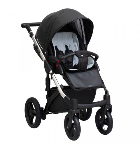 Tapicerka budki gondoli i siedziska spacerowego posiada dużą, praktyczna wentylację oraz rozkładany daszek przeciwsłoneczny.Wyjątkowo przestronna i komfortowa gondola (długość 85 cm) z intuicyjnym i wygodnym systemem podnoszenia zagłówka ,oraz z systemem wentylacji na spodzie. Praktyczna, obszyta ekoskórą rączka do przenoszenia gondoli. Wewnątrz gondoli wysokogatunkowa tkanina oraz materac z wkładką kokosową – odpinane wnętrze gondoli, dzięki czemu całość można prać. Możliwość wpinania gondoli i spacerówki przodem lub tyłem do kierunku jazdy – system wpinania „klik klik”. Elementy tapicerki wykonane z wysokogatunkowych materiałów przeznaczonych do produkcji wózków dziecięcych, bezpieczne dla Twojego Maleństwa i łatwe w utrzymaniu czystości. Designerska oraz bardzo pojemna torba.