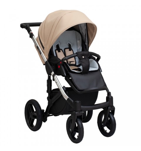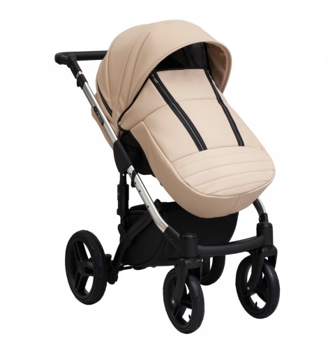Tapicerka budki gondoli i siedziska spacerowego posiada dużą, praktyczna wentylację oraz rozkładany daszek przeciwsłoneczny.Wyjątkowo przestronna i komfortowa gondola (długość 85 cm) z intuicyjnym i wygodnym systemem podnoszenia zagłówka ,oraz z systemem wentylacji na spodzie. Praktyczna, obszyta ekoskórą rączka do przenoszenia gondoli. Wewnątrz gondoli wysokogatunkowa tkanina oraz materac z wkładką kokosową – odpinane wnętrze gondoli, dzięki czemu całość można prać. Możliwość wpinania gondoli i spacerówki przodem lub tyłem do kierunku jazdy – system wpinania „klik klik”. Elementy tapicerki wykonane z wysokogatunkowych materiałów przeznaczonych do produkcji wózków dziecięcych, bezpieczne dla Twojego Maleństwa i łatwe w utrzymaniu czystości. Designerska oraz bardzo pojemna torba.