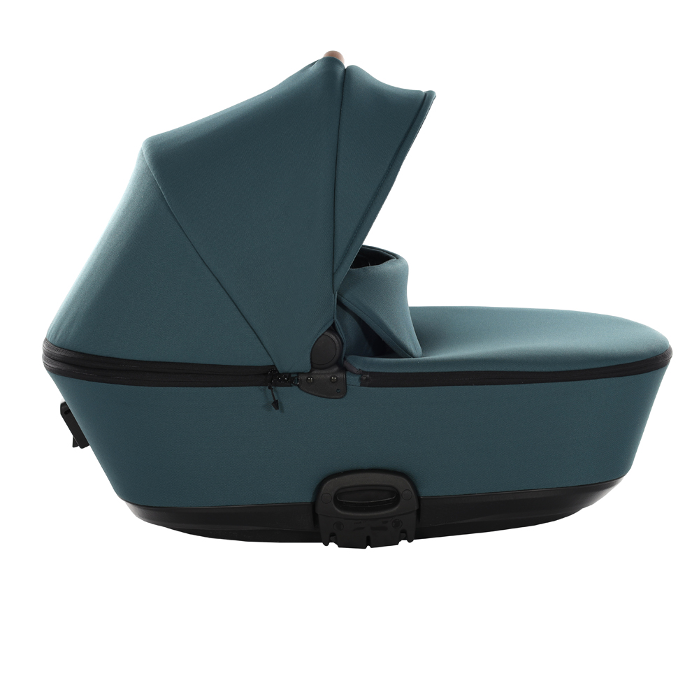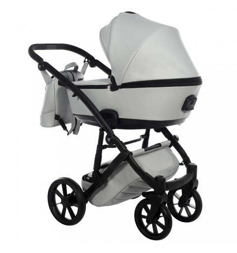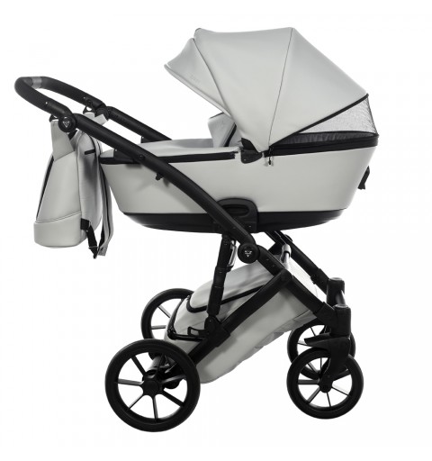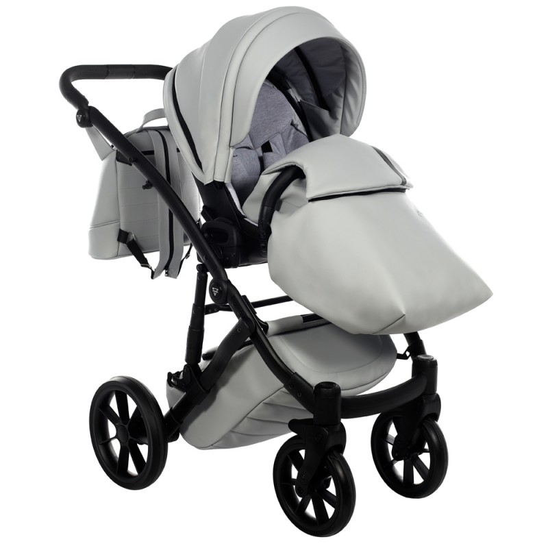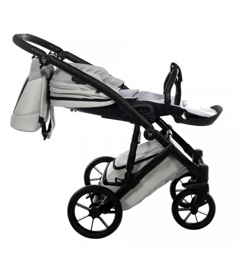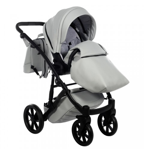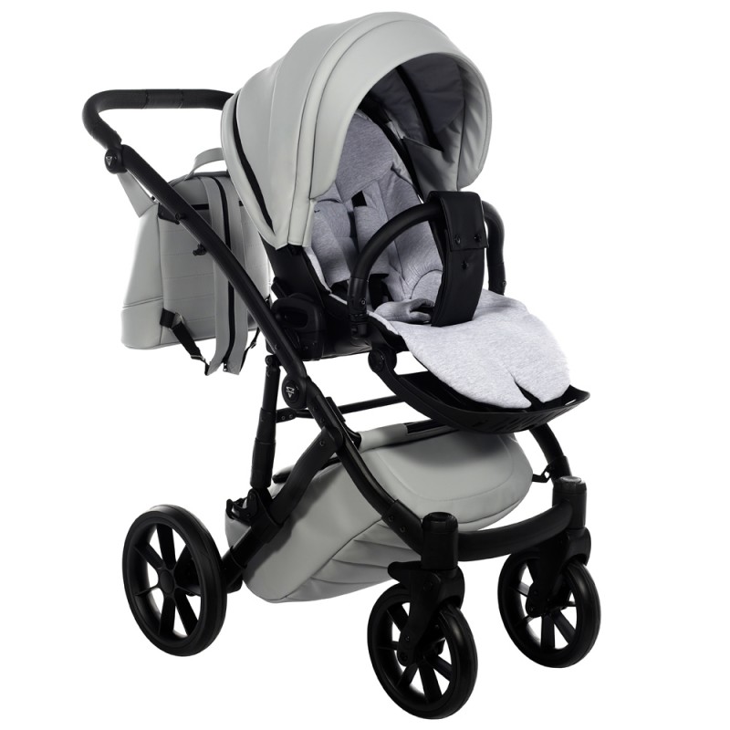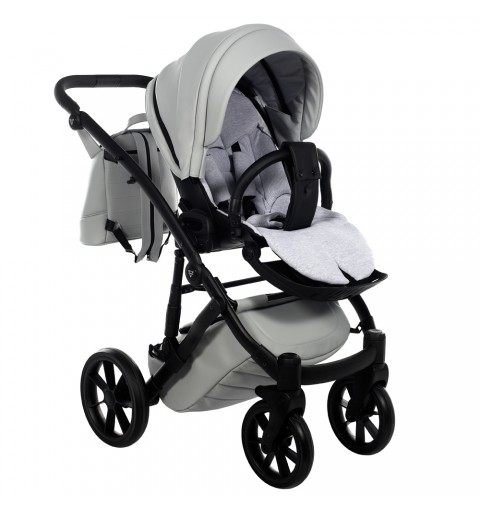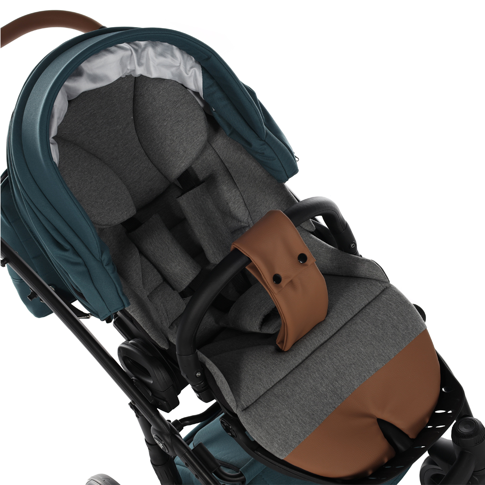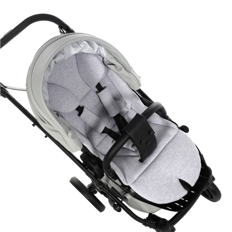 Lekka, kompaktowa spacerówka składana razem ze stelażem. Możliwość montażu spacerówki przodem lub tyłem do kierunku jazdy. Estetyczny, miękki materacyk w spacerówce. Przedłużana budka, pięciopunktowe pasy bezpieczeństwa z regulacją wysokości, regulowane oparcie do pozycji leżącej, regulowany podnóżek oraz możliwość wydłużenia. Odpinana barierka, obszyta eko-skórą. Osłonka na nóżki. Wysokiej jakości atestowane tkaniny. eWodoodporna i odporna tkanina na promieniowanie UV 60