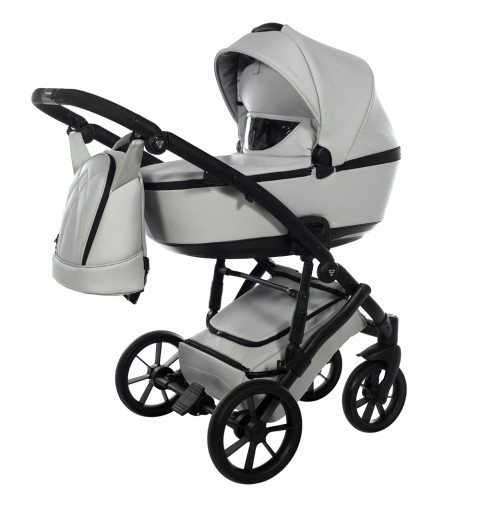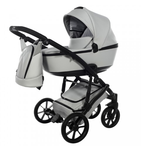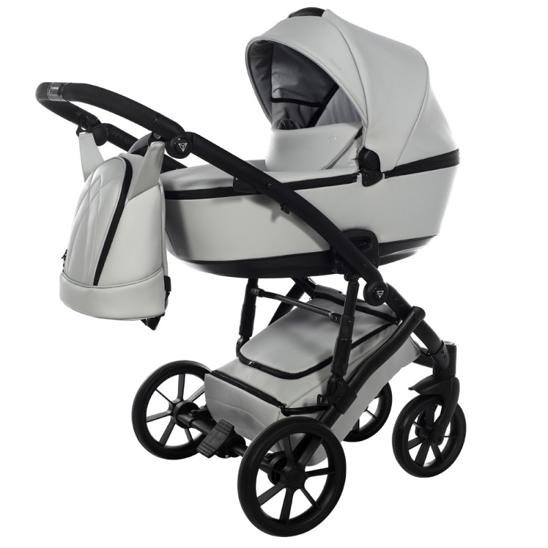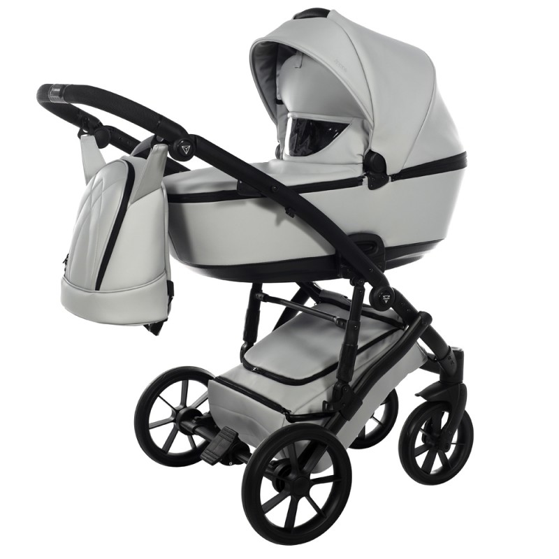 Lekki aluminiowy stelaż, komfortowe zawieszenie z możliwością demontażu kół, znacznie redukuje rozmiar po złożeniu. 6-punktowa amortyzacja konstrukcji z możliwością blokady, który wpływa na komfort prowadzenia wózka. Przednie koła obrotowe z możliwością blokady, system Anti Shock, system stabilizacji kół obrotowych, bezobsługowe, bezdętkowe koła zapewniające płynne prowadzenie. Centralny hamulec. Szybki i prosty system składania ramy do małych rozmiarów. Regulowana rączka obszyta eko-skórą. Duży zamykany kosz na zakupy. Możliwość wpięcia gondoli, spacerówek i fotelików samochodowych przodem lub tyłem do kierunku jazdy. Możliwość złożenia stelaża wraz z wpiętą spacerówką.