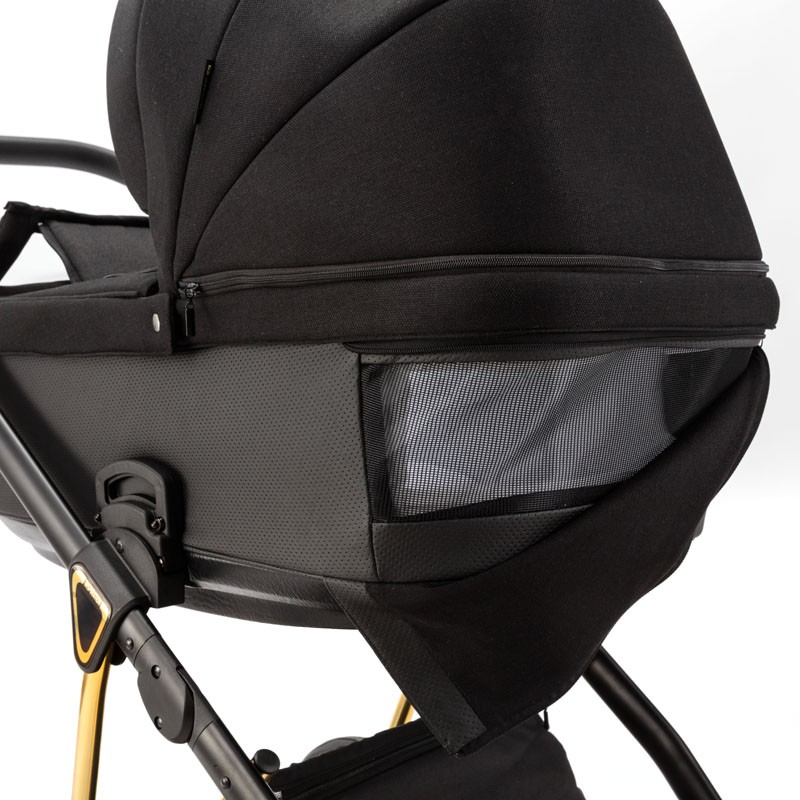 Gondola Belissy posiada otwierane okno wentylacyjne z klapką przypinaną na magnesy ukryte w tapicerce. Pokrowiec gondoli jest rozpinany dzięki czemu uzyskujemy szybki dostęp do dziecka bez konieczności zdejmowania pokrowca. Wiatrołap w pokrowcu możemy rozłożyć, stale utrzymując kontakt wzrokowy z dzieckiem dzięki przezroczystemu okienku, lub odpiąć całkowicie, kiedy nie jest potrzebny. W budce gondoli znajduje się dodatkowe okno wentylacyjne, zapinane na zamek, oraz chowany daszek przeciwsłoneczny.