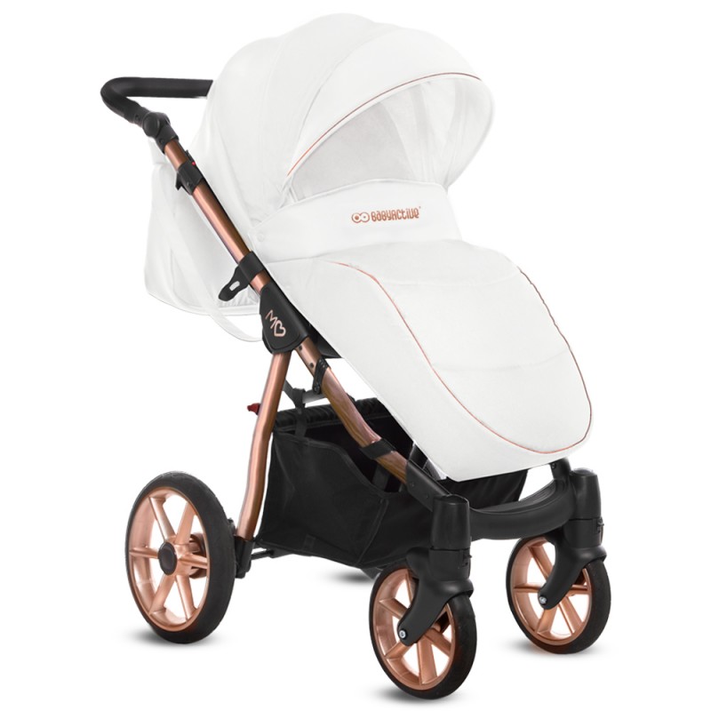Babyactive Mommy Glossy White - wózek wielofunkcyjny, zestaw 2w1 z opcją 3w1 i 4w1 | Rose Gold mgw02