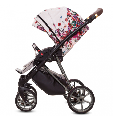 Doskonałe rozwiązanie, które pozwoli Ci idealnie dopasować do siebie kąt nachylenia rączki, dzięki czemu możesz wybrać się nawet na dłuższy spacer nie obawiając się o swoje nadgarstki. Dodatkowo, pokrycie rączki wysokiej jakości ekoskórą sprawia, że jest ona przyjemna w dotyku i łatwo zachować ją w czystości. Przestrzeń pod wózkiem zajmuje przestronny i pakowny, zamykany na suwak, koszyk na zakupy wykonany z materiału odpornego na zabrudzenia. Jeśli nie jest potrzebny da się go łatwo odpiąć. Płynna regulacja amortyzacji wózka pozwoli Ci na spacery wózkiem po trudnym nierównym terenie tak aby dziecko mogło spokojnie podróżować oraz spać.