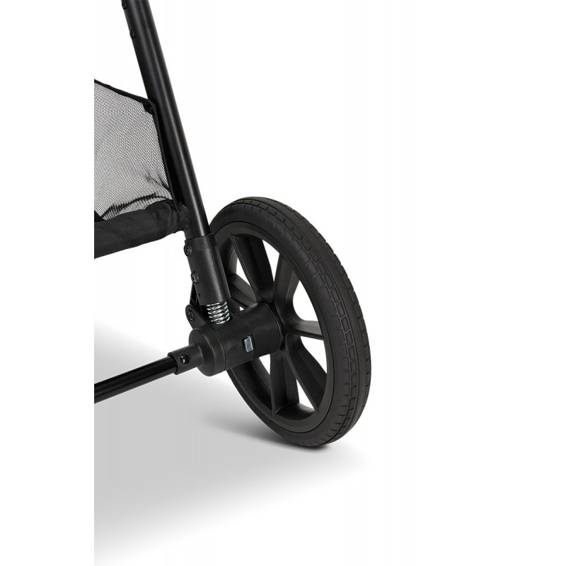 Jednym ruchem nadgarstka możesz złożyć wózek MOON do bardzo małych rozmiarów, dzięki czemu można go łatwo schować w dowolnym miejscu. Nie trzeba zdejmować kół, a spacerówka może pozostać na nim – niezależnie od kierunku jazdy, w którym jest zamontowany.