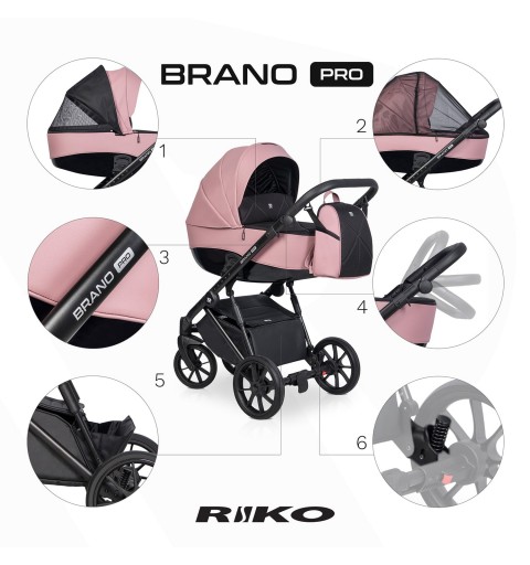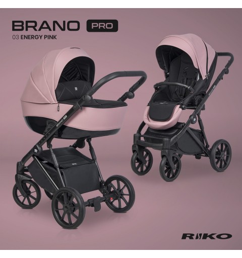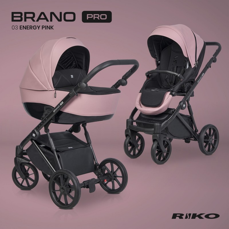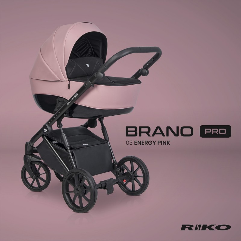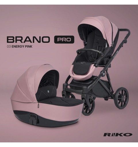 Riko Brano Pro - wózek wielofunkcyjny, zestaw 2w1 z opcją 3w1 i 4w1 | Energy Pink