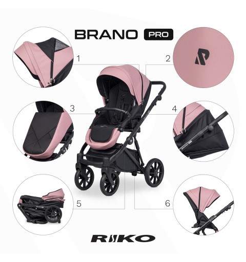 Riko Brano Pro jest wózkiem wielofunkcyjnym, a więc w zestawie posiada siedzisko spacerowe (spacerówkę) oraz gondolę. Jest to tak zwany wózek 2w1. Dodatkowo możliwe jest dokupienie fotelika samochodowego.