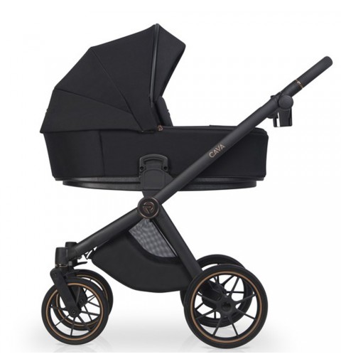 Prezentujemy wózek dziecięcy CAVA Copper - połączenie doskonałej funkcjonalności z najwyższym designem. Wózek wyróżnia się czarnym stelażem o strukturalnym wykończeniu, nadając mu wyrafinowany i elegancki charakter. Wzbogacony o uderzające miedziane akcenty, model CAVA Copper łączy luksus z nowoczesnym brzmieniem.