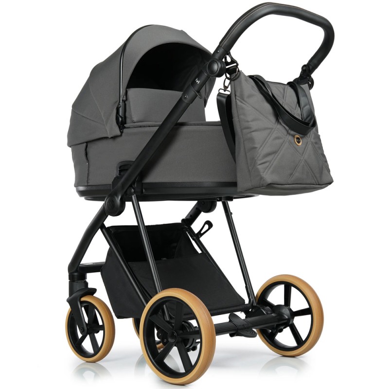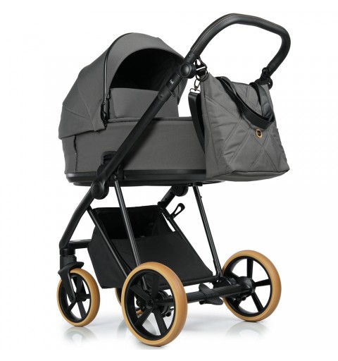 Lekki aluminiowy stelaż, komfortowe zawieszenie. Amortyzator z dwustopniową regulacją twardości, spora rozpiętość regulacji sprawia, że wózek dostosowany jest dobrze do bezdroży jak i gładkich powierzchni. Przednie koła obrotowe z możliwością blokady, system Anti Shock, system stabilizacji kół obrotowych. Bezobsługowe, bezdętkowe koła zapewniają płynne prowadzenie. Centralny hamulec. Szybki i prosty system składania ramy do małych rozmiarów. Możliwość zdjęcia kół z osią, co redukuje szerokość stelaża po złożeniu. Kosz na zakupy z możliwością powiększenia, z szybkim i łatwym dostępem do wnętrza dzięki zapięciom na magnes. Regulowana rączka obszyta eko-skórą. Łatwy i wygodny system „Click” przy montażu gondoli, spacerówki i fotelika.