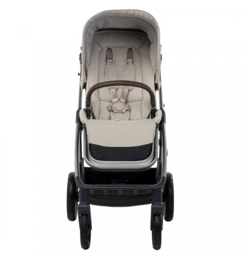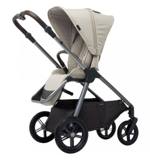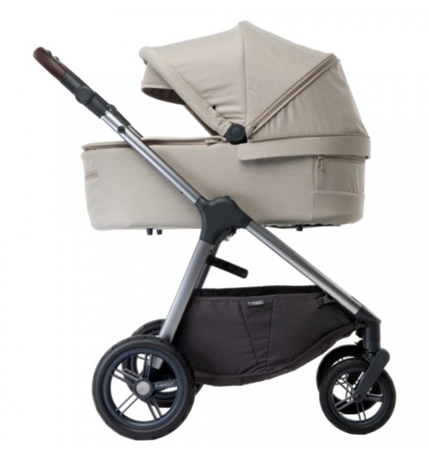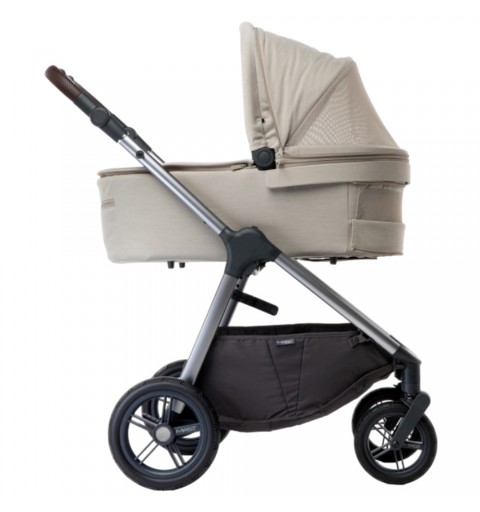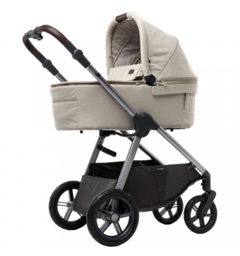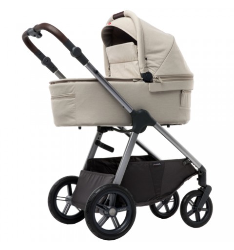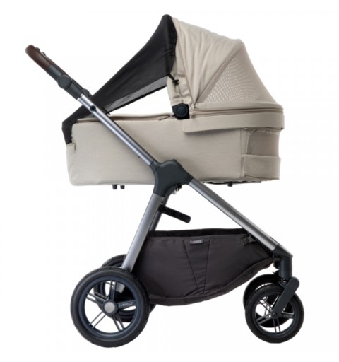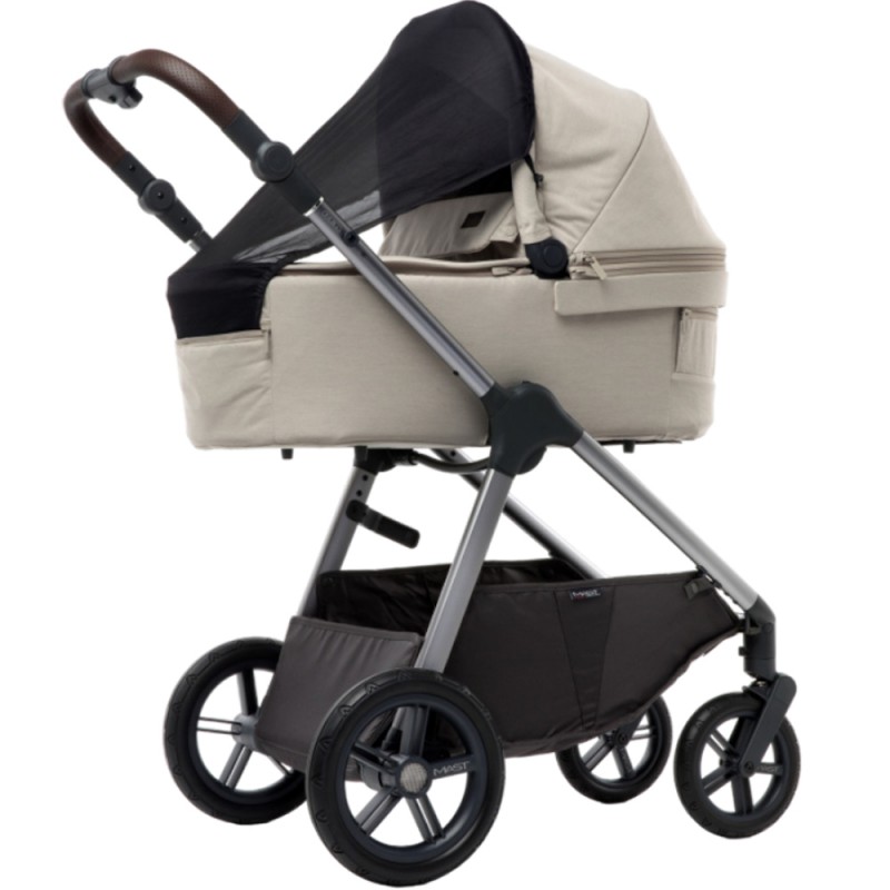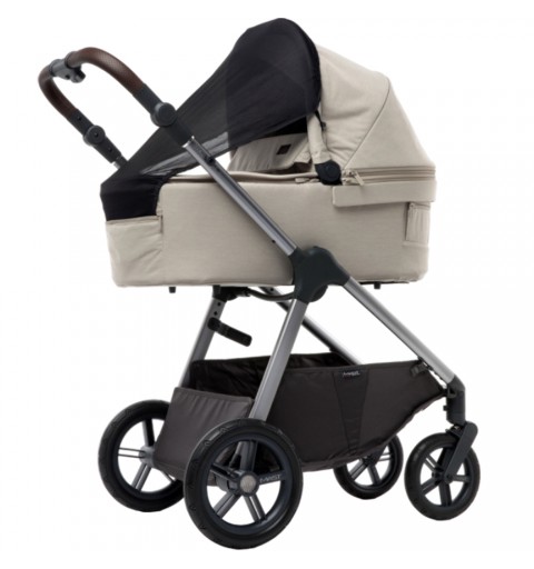 Gondola M5x zawiera bardzo wygodny i oddychający materac. Jest dobrze wentylowana, aby zapewnić optymalną cyrkulację powietrza, co gwarantuje spokojny i bezpieczny sen. Możesz otworzyć wentylację pod spodem, na budce lub na główce gondoli, w zależności od potrzeb. Zintegrowana siatka UV zapewnia dodatkową ochronę przed szkodliwymi promieniami słonecznymi. Gondola może być łatwo przymocowana do ramy wózka za pomocą wbudowanych adapterów i ponownie zdemontowana za pomocą przycisków pamięci.