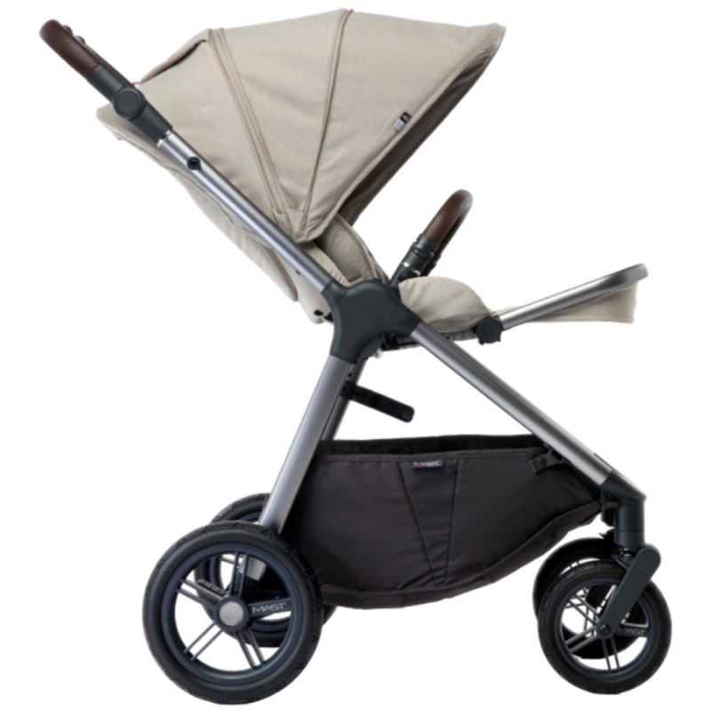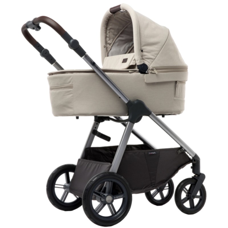 Wózek M.5x posiada bardzo duży i wygodny kosz na zakupy, który wytrzymuje obciążenie do 5 kg. Dodatkowo obszerna przestrzeń do przechowywania zapewnia, że wszystkie niezbędne rzeczy dla dziecka będą zawsze pod ręką.