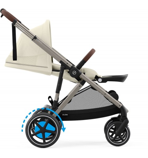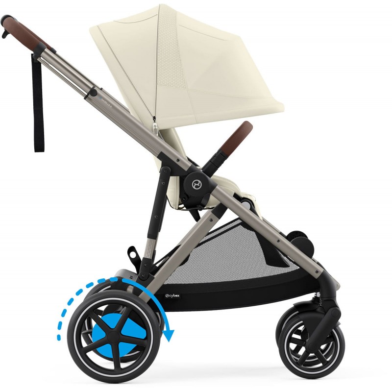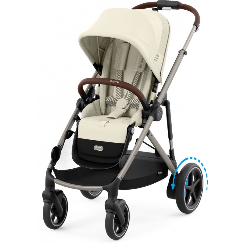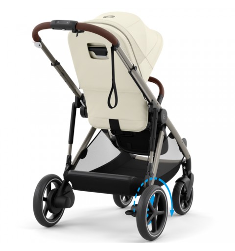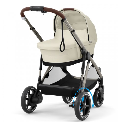 Zestaw wózka spacerowego czyli podstawowa wersja Cybex e-Gazelle S pozawala na bardzo komfortowe i przyjemne spacery zarówno dla dziecka ale także dla rodzica. Siedzisko możemy założyć zarówna przodem jak i tyłem do kierunku jazdy oraz wyżej lub niżej na ramie wózka. Dodatkowo w takim zestawie możemy korzystać z dodatkowego kosza na zakupy który możemy zaczepić na ram wózka.