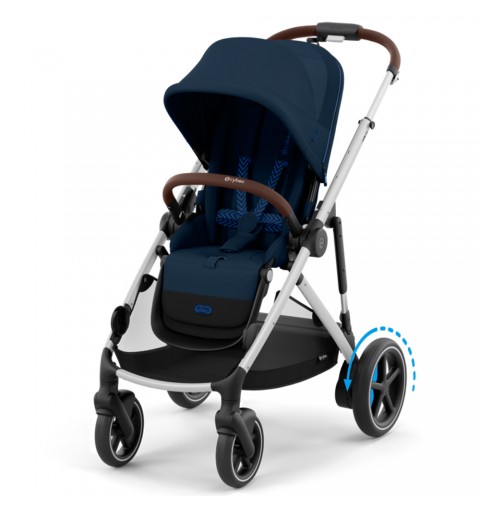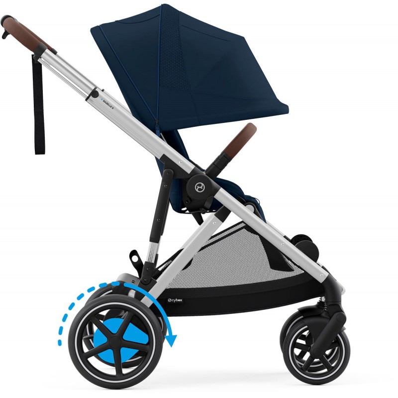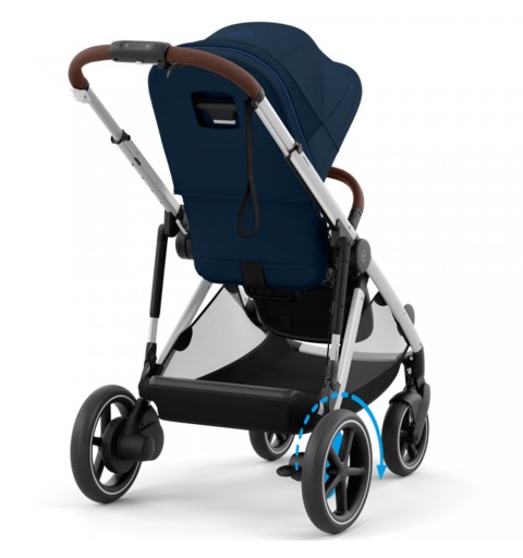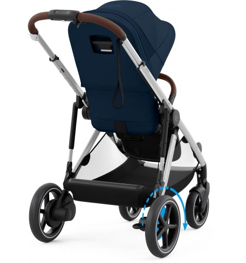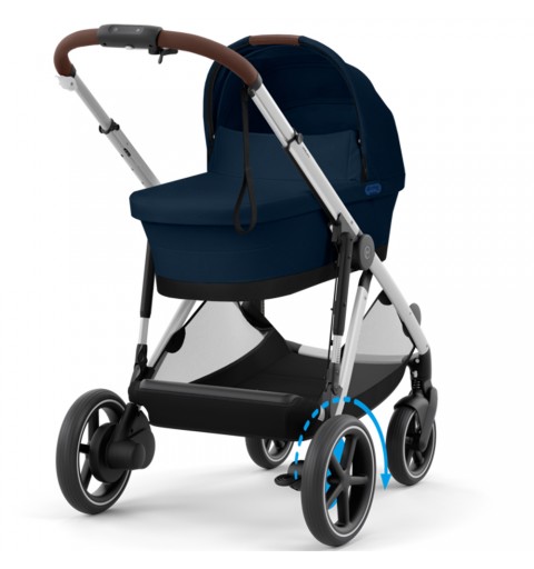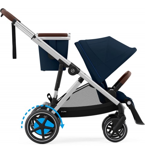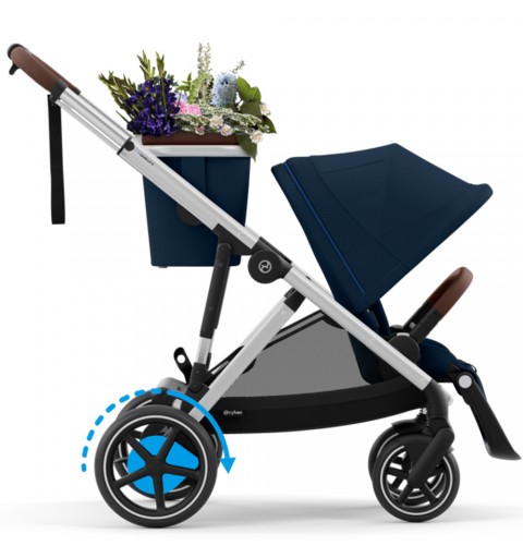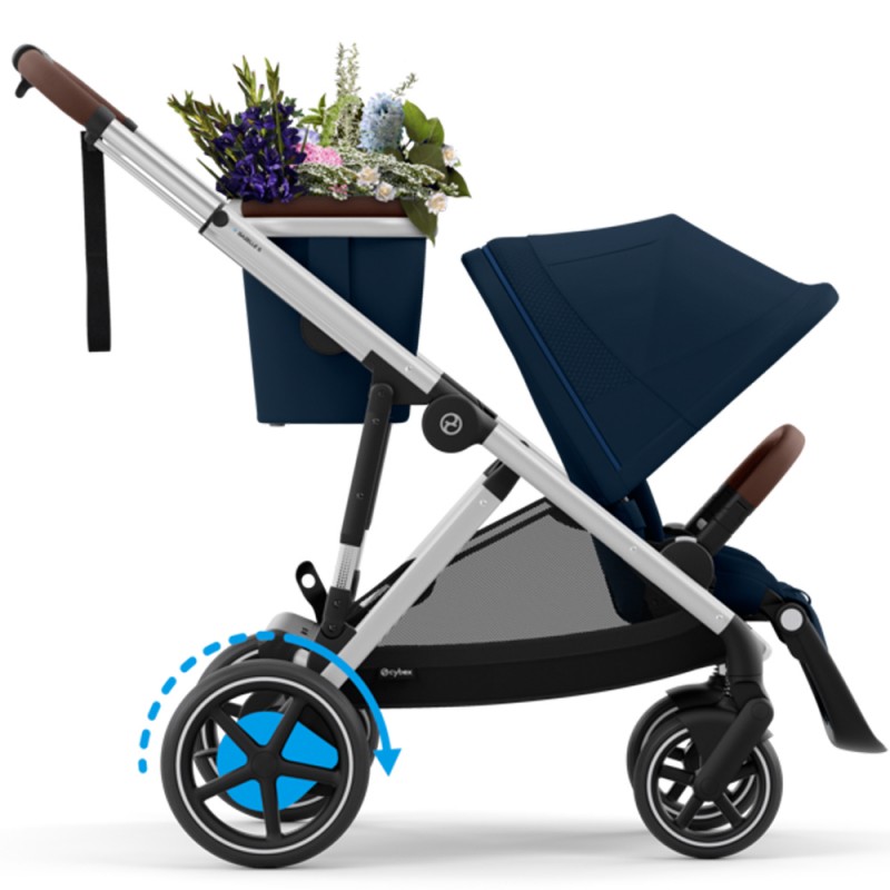 Zestaw wózka spacerowego czyli podstawowa wersja Cybex e-Gazelle S pozawala na bardzo komfortowe i przyjemne spacery zarówno dla dziecka ale także dla rodzica. Siedzisko możemy założyć zarówna przodem jak i tyłem do kierunku jazdy oraz wyżej lub niżej na ramie wózka. Dodatkowo w takim zestawie możemy korzystać z dodatkowego kosza na zakupy który możemy zaczepić na ram wózka.