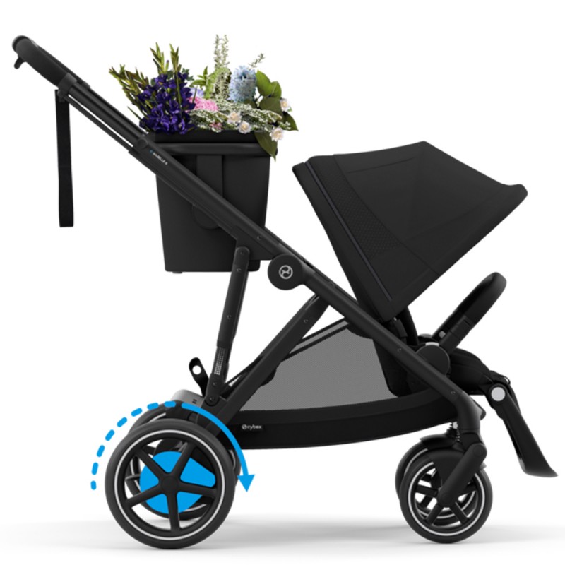 Zestaw wózka spacerowego czyli podstawowa wersja Cybex e-Gazelle S pozawala na bardzo komfortowe i przyjemne spacery zarówno dla dziecka ale także dla rodzica. Siedzisko możemy założyć zarówna przodem jak i tyłem do kierunku jazdy oraz wyżej lub niżej na ramie wózka. Dodatkowo w takim zestawie możemy korzystać z dodatkowego kosza na zakupy który możemy zaczepić na ram wózka.