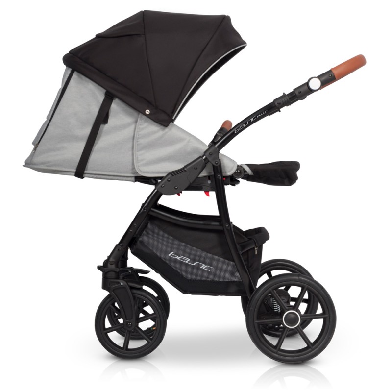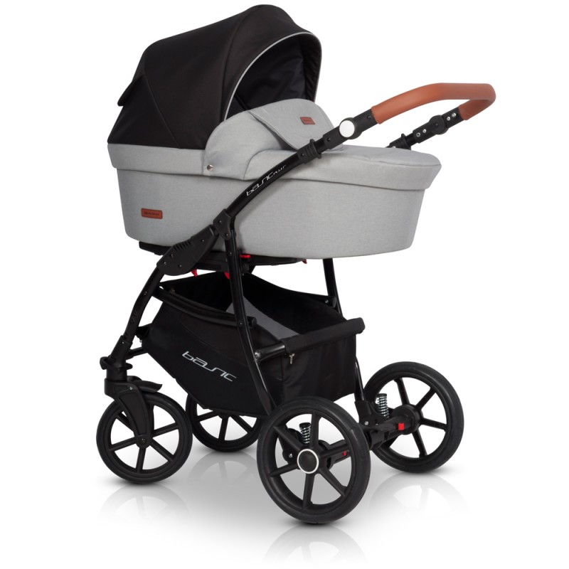 Doskonałe rozwiązanie, które pozwoli Ci idealnie dopasować do siebie kąt nachylenia rączki, dzięki czemu możesz wybrać się nawet na dłuższy spacer nie obawiając się o swoje nadgarstki. Dodatkowo, pokrycie rączki wysokiej jakości ekoskórą sprawia, że jest ona przyjemna w dotyku i łatwo zachować ją w czystości. Przestrzeń pod wózkiem zajmuje przestronny i pakowny koszyk na zakupy wykonany z materiału odpornego na zabrudzenia. Jeśli nie jest potrzebny da się go łatwo odpiąć. Płynna regulacja amortyzacji wózka pozwoli Ci na spacery wózkiem po trudnym nierównym terenie tak aby dziecko mogło spokojnie podróżować oraz spać.