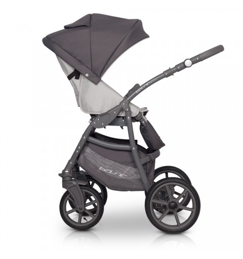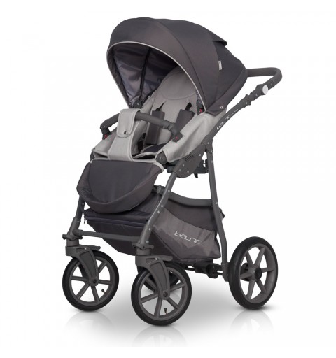 Siedzisko spacerówki możemy zamontować przodem i tyłem do kierunku jazdy oraz składać przodem wraz z stelażem wózka. Dodatkowa wkładka na siedzisku wykonana z miękkiej dzianiny. Oryginalny pokrowiec na nogi dobrze zabezpieczy dziecko na jesienno zimowe spacery. Pasy 5-punktowe z regulacją i miękkimi osłonkami. Barierka bezpieczeństwa regulowana 360 stopni z możliwością odpięcia z jednej jak i z drugiej strony, obszyta eko-skórą - łatwa w czyszczeniu tak sam jak i podnóżek spacerówki. Folia przeciwdeszczowa pasująca do spacerówki. Tapicerka wykonana z impregnowanej tkaniny, łatwa w czyszczeniu, posiada filtr UV. W budne spacerówki mamy okienko do obesrwacji dziecka uszyte z moskitiery co pozwala dodatkowo na wentylacje. Możliwość złożenia do małych rozmiarów do transportu.