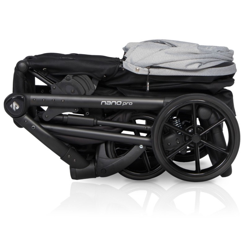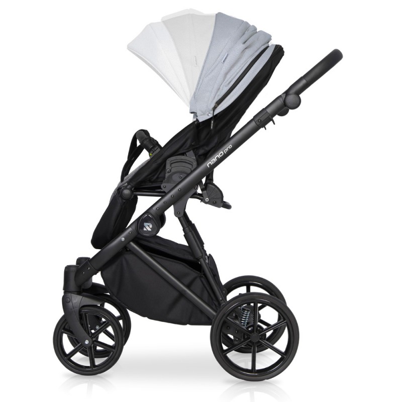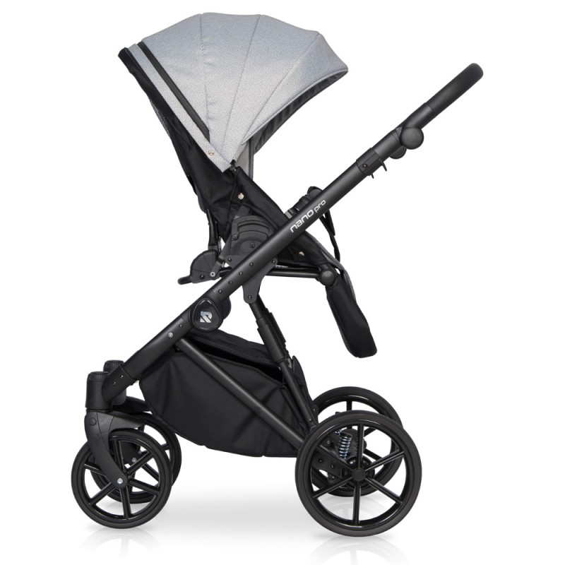 Wózek dziecięcy Nano Pro marki RIKO jest nowością z kolekcji 2020. Projektując nową kolekcję postawiliśmy na doskonałą amortyzację i niższą wagę. Nano Pro jest wózkiem bardzo miękkim, dzięki zastosowaniu najnowszego systemu dodatkowej amortyzacji gondoli i siedziska. Amortyzatory zostały zamontowane w taki sposób, żeby pracowały nawet gdy dziecko jest jeszcze bardzo małe, a jednocześnie, żeby ułatwiały podpicie wózka podczas wjeżdżania na krawężnik. Udało się. Skok amortyzatorów jest wyczuwalny nawet, gdy wózek jest nieobciążony.Na uwagę zasługują również nowe koła bezdętkowe z gumowymi oponami. Jest to zupełnie nowy typ kół, w które uzbroiliśmy wszystkie nasze nowe wózki wielofunkcyjne z kolekcji 2020. Ich główna zaletą jest niezwykle niska waga oraz fakt, że opona ugina się, zapewniając amortyzację taka samą jak koła pompowane bez ryzyka uchodzenia powietrza czy przebicia dętki.Tapicerki wózka RIKO Nano Pro uszyte zostały częściowo ze skóry ekologicznej i częściowo z tkaniny typu melanż. Oba rodzaje materiałów posiadają efekt delikatnej metalizacji, dzięki czemu wózki w rzeczywistości prezentują się jeszcze ładniej niż na zdjęciach i filmach reklamowych.