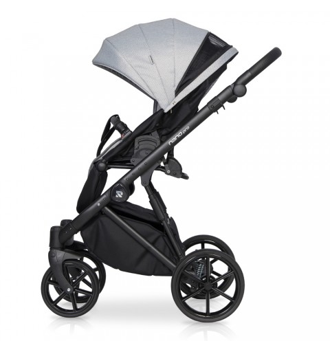 Wózek dziecięcy Nano Pro marki RIKO jest nowością z kolekcji 2020. Projektując nową kolekcję postawiliśmy na doskonałą amortyzację i niższą wagę. Nano Pro jest wózkiem bardzo miękkim, dzięki zastosowaniu najnowszego systemu dodatkowej amortyzacji gondoli i siedziska. Amortyzatory zostały zamontowane w taki sposób, żeby pracowały nawet gdy dziecko jest jeszcze bardzo małe, a jednocześnie, żeby ułatwiały podpicie wózka podczas wjeżdżania na krawężnik. Udało się. Skok amortyzatorów jest wyczuwalny nawet, gdy wózek jest nieobciążony.Na uwagę zasługują również nowe koła bezdętkowe z gumowymi oponami. Jest to zupełnie nowy typ kół, w które uzbroiliśmy wszystkie nasze nowe wózki wielofunkcyjne z kolekcji 2020. Ich główna zaletą jest niezwykle niska waga oraz fakt, że opona ugina się, zapewniając amortyzację taka samą jak koła pompowane bez ryzyka uchodzenia powietrza czy przebicia dętki.Tapicerki wózka RIKO Nano Pro uszyte zostały częściowo ze skóry ekologicznej i częściowo z tkaniny typu melanż. Oba rodzaje materiałów posiadają efekt delikatnej metalizacji, dzięki czemu wózki w rzeczywistości prezentują się jeszcze ładniej niż na zdjęciach i filmach reklamowych.