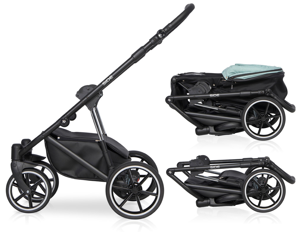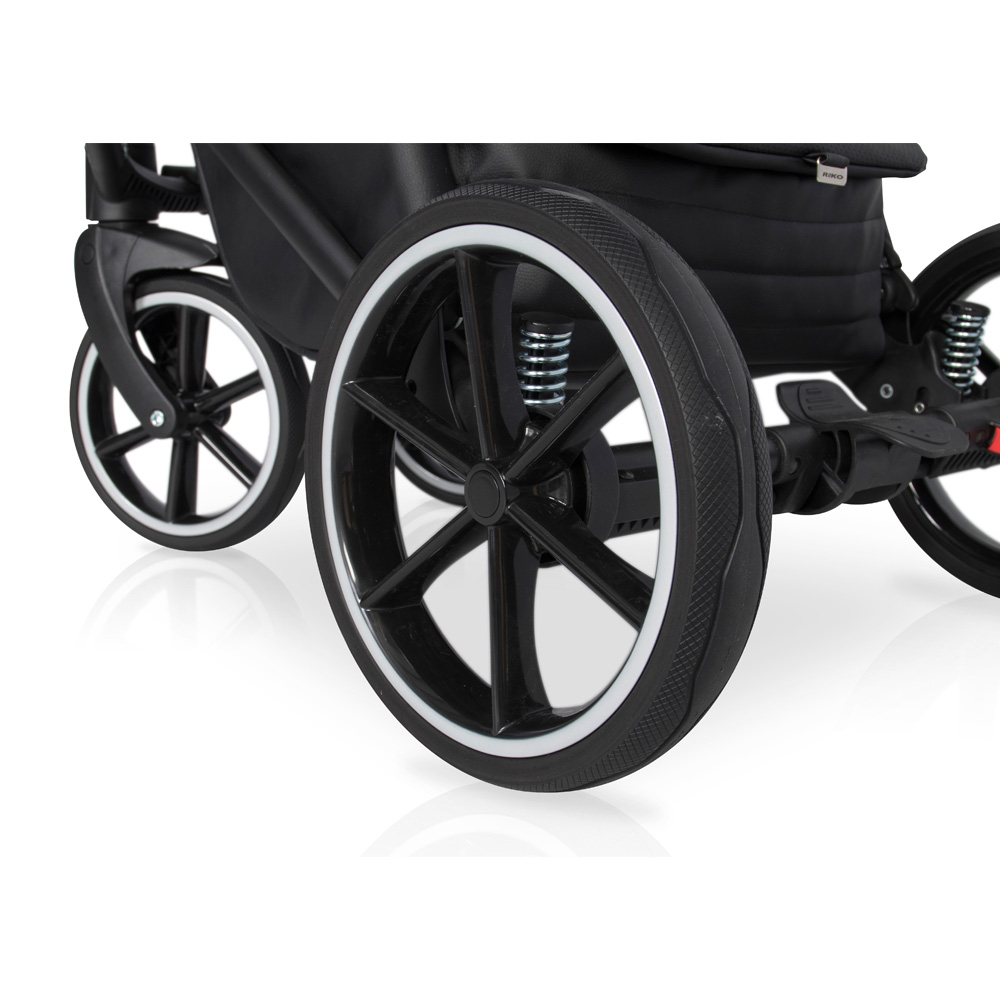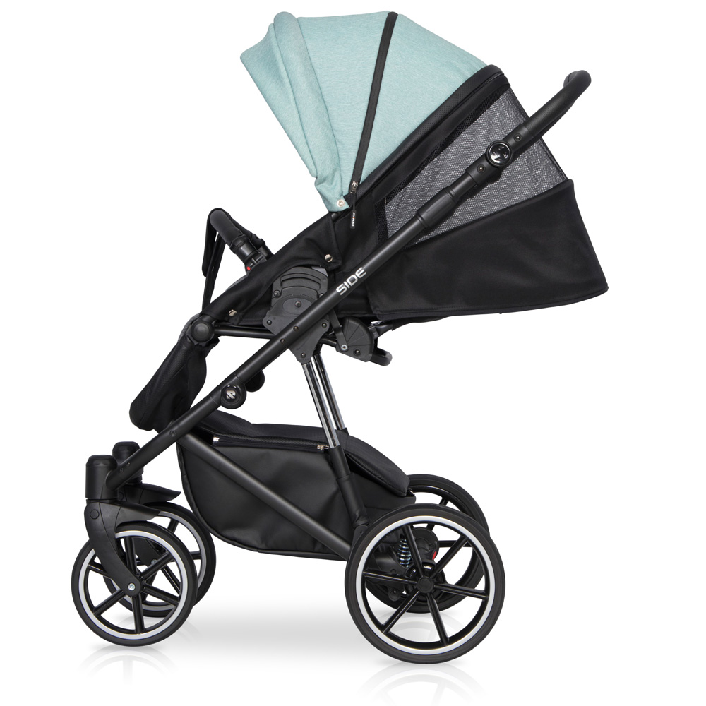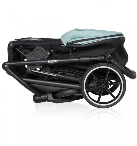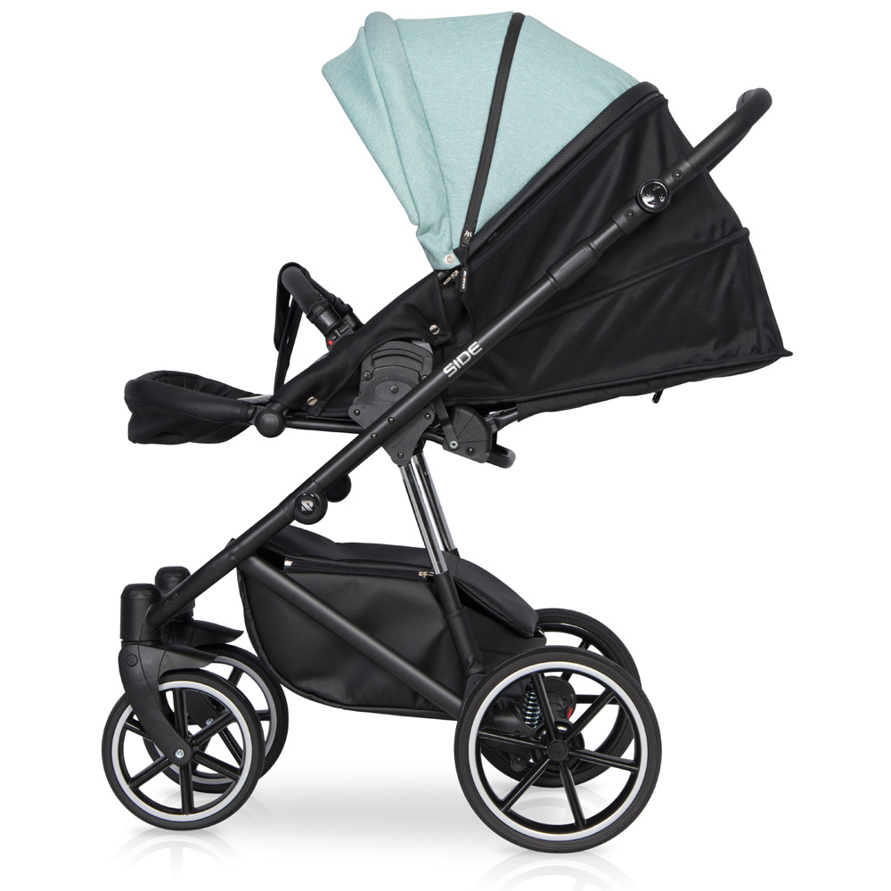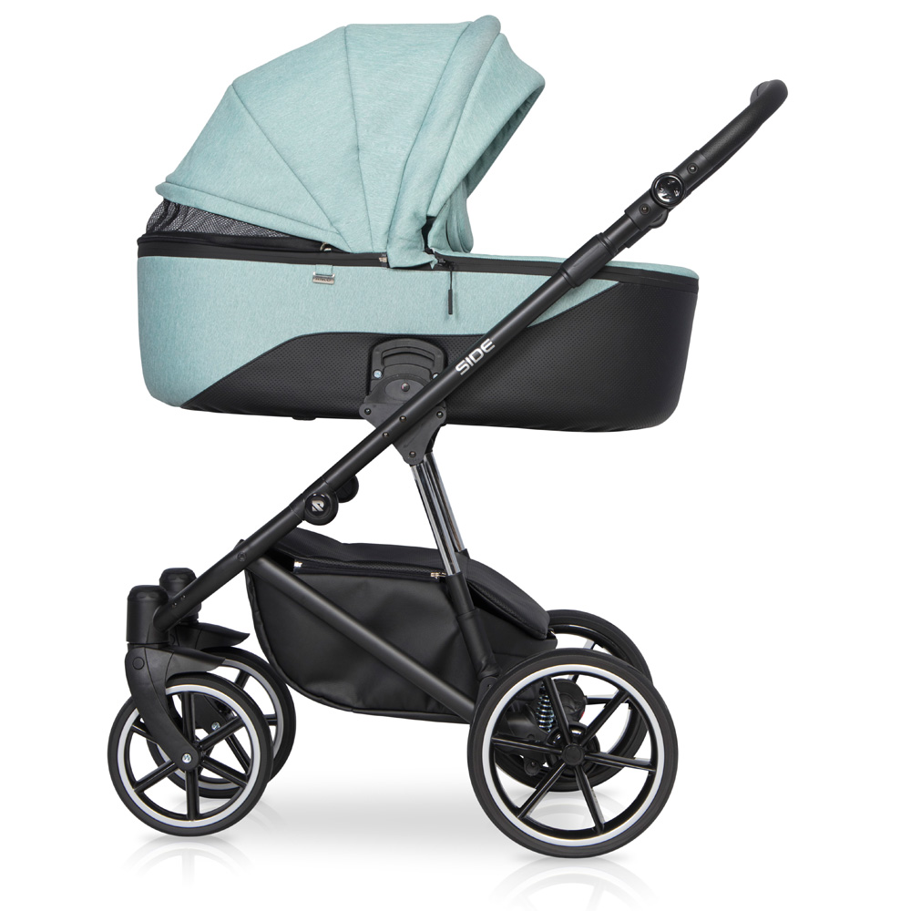 Wózek dziecięcy Side marki RIKO jest nowością z kolekcji 2020. Projektując nową kolekcję postawiliśmy na doskonałą amortyzację i niższą wagę. Side jest wózkiem bardzo miękkim, dzięki zastosowaniu najnowszego systemu dodatkowej amortyzacji gondoli i siedziska. Amortyzatory zostały zamontowane w taki sposób, żeby pracowały nawet gdy dziecko jest jeszcze bardzo małe, a jednocześnie, żeby ułatwiały podpicie wózka podczas wjeżdżania na krawężnik. Udało się. Skok amortyzatorów jest wyczuwalny nawet, gdy wózek jest nieobciążony.Na uwagę zasługują również nowe koła bezdętkowe z gumowymi oponami. Jest to zupełnie nowy typ kół, w które uzbroiliśmy wszystkie nasze nowe wózki wielofunkcyjne z kolekcji 2020. Ich główna zaletą jest niezwykle niska waga oraz fakt, że opona ugina się, zapewniając amortyzację taka samą jak koła pompowane bez ryzyka uchodzenia powietrza czy przebicia dętki.Tapicerki wózka RIKO Side uszyte zostały częściowo ze skóry ekologicznej i częściowo z tkaniny typu melanż. Oba rodzaje materiałów posiadają efekt delikatnej metalizacji, dzięki czemu wózki w rzeczywistości prezentują się jeszcze ładniej niż na zdjęciach i filmach reklamowych.