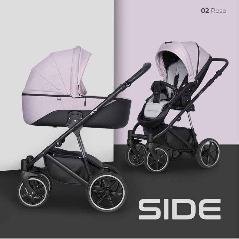 Riko Side - wózek wielofunkcyjny, zestaw 2w1 z opcją 3w1 i 4w1 | Rose