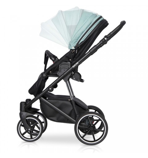 Wózek dziecięcy Side marki RIKO jest nowością z kolekcji 2020. Projektując nową kolekcję postawiliśmy na doskonałą amortyzację i niższą wagę. Side jest wózkiem bardzo miękkim, dzięki zastosowaniu najnowszego systemu dodatkowej amortyzacji gondoli i siedziska. Amortyzatory zostały zamontowane w taki sposób, żeby pracowały nawet gdy dziecko jest jeszcze bardzo małe, a jednocześnie, żeby ułatwiały podpicie wózka podczas wjeżdżania na krawężnik. Udało się. Skok amortyzatorów jest wyczuwalny nawet, gdy wózek jest nieobciążony.Na uwagę zasługują również nowe koła bezdętkowe z gumowymi oponami. Jest to zupełnie nowy typ kół, w które uzbroiliśmy wszystkie nasze nowe wózki wielofunkcyjne z kolekcji 2020. Ich główna zaletą jest niezwykle niska waga oraz fakt, że opona ugina się, zapewniając amortyzację taka samą jak koła pompowane bez ryzyka uchodzenia powietrza czy przebicia dętki.Tapicerki wózka RIKO Side uszyte zostały częściowo ze skóry ekologicznej i częściowo z tkaniny typu melanż. Oba rodzaje materiałów posiadają efekt delikatnej metalizacji, dzięki czemu wózki w rzeczywistości prezentują się jeszcze ładniej niż na zdjęciach i filmach reklamowych.