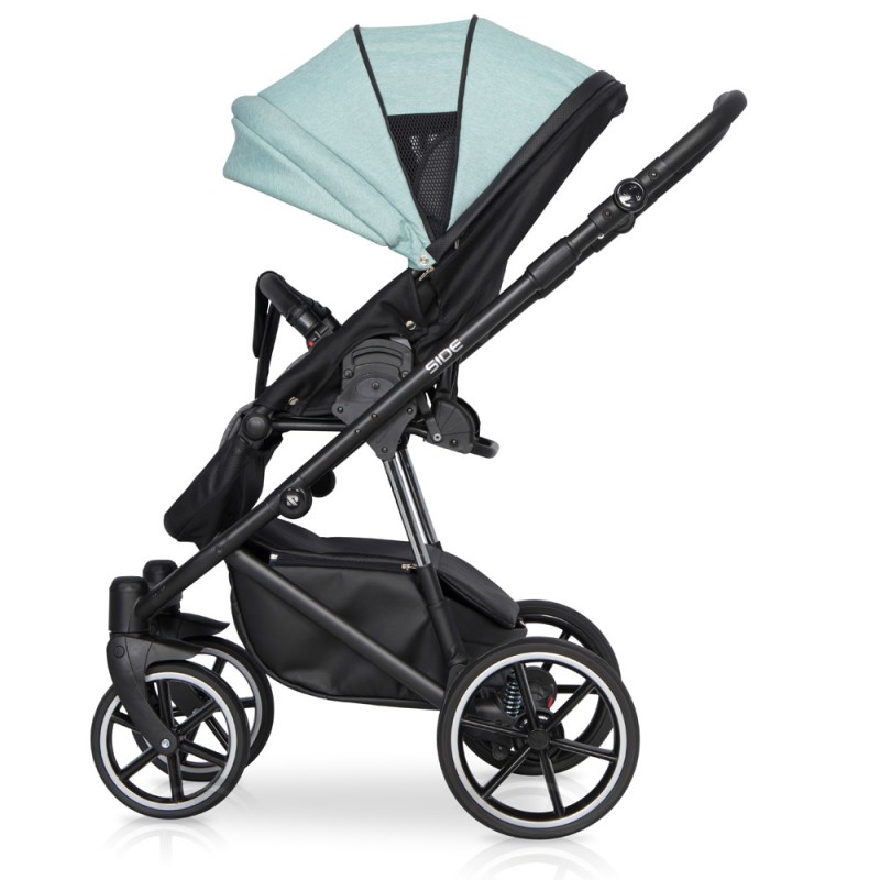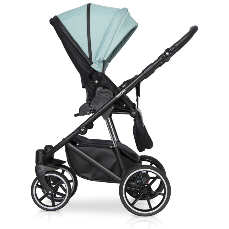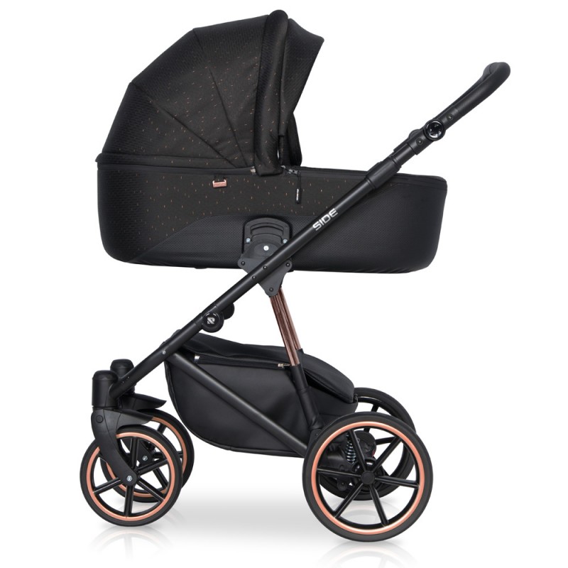 Wózek dziecięcy Side marki RIKO jest nowością z kolekcji 2020. Projektując nową kolekcję postawiliśmy na doskonałą amortyzację i niższą wagę. Side jest wózkiem bardzo miękkim, dzięki zastosowaniu najnowszego systemu dodatkowej amortyzacji gondoli i siedziska. Amortyzatory zostały zamontowane w taki sposób, żeby pracowały nawet gdy dziecko jest jeszcze bardzo małe, a jednocześnie, żeby ułatwiały podpicie wózka podczas wjeżdżania na krawężnik. Udało się. Skok amortyzatorów jest wyczuwalny nawet, gdy wózek jest nieobciążony.Na uwagę zasługują również nowe koła bezdętkowe z gumowymi oponami. Jest to zupełnie nowy typ kół, w które uzbroiliśmy wszystkie nasze nowe wózki wielofunkcyjne z kolekcji 2020. Ich główna zaletą jest niezwykle niska waga oraz fakt, że opona ugina się, zapewniając amortyzację taka samą jak koła pompowane bez ryzyka uchodzenia powietrza czy przebicia dętki.Tapicerki wózka RIKO Side uszyte zostały częściowo ze skóry ekologicznej i częściowo z tkaniny typu melanż. Oba rodzaje materiałów posiadają efekt delikatnej metalizacji, dzięki czemu wózki w rzeczywistości prezentują się jeszcze ładniej niż na zdjęciach i filmach reklamowych.