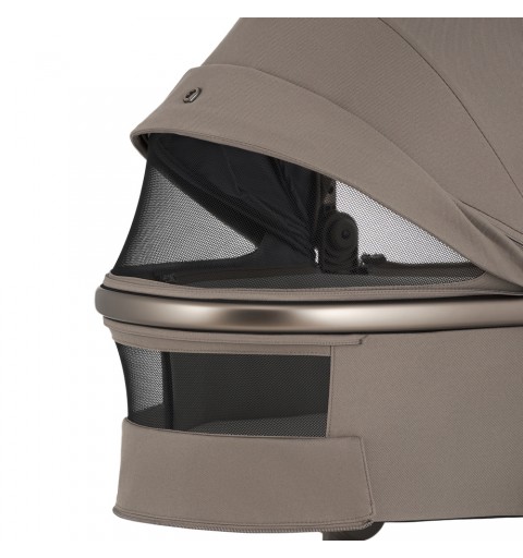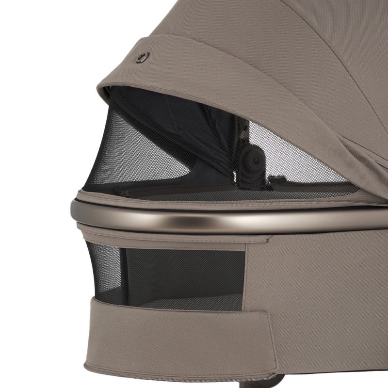 Zarówno gondola, jak i siedzisko są wyposażone w duży daszek z dodatkową sekcją, który zapewnia pełne pokrycie i ochronę dziecka przed nieoczekiwanymi warunkami pogodowymi.