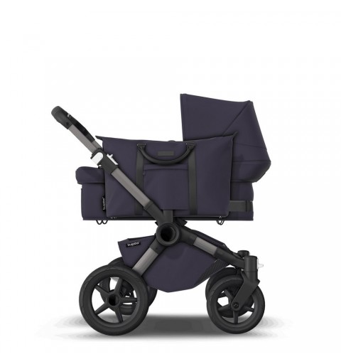Koszyk pod siedziskiem w wózku Bugaboo Donkey 5 utrzyma do 10 kg. W konfiguracji Mono, możesz użyć koszyka bocznego, który udźwignie kolejne 10 kg.