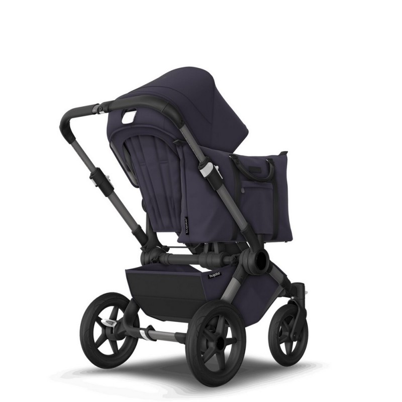 Koszyk pod siedziskiem w wózku Bugaboo Donkey 5 utrzyma do 10 kg. W konfiguracji Mono, możesz użyć koszyka bocznego, który udźwignie kolejne 10 kg.
