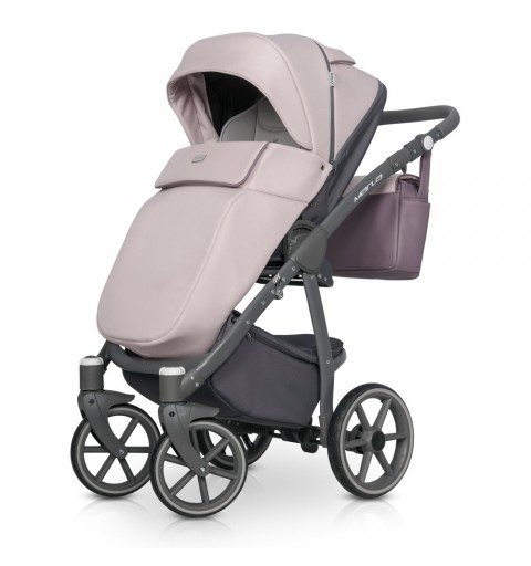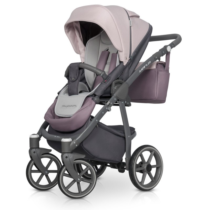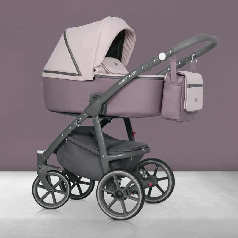 Marla to nowoczesny wózek wielofunkcyjny łączący prostotę formy z ponadprzeciętną funkcjonalnością. Duża gondola z pewnością pomieści Twoje dziecko dopóki nie zacznie korzystać z siedziska spacerowego. Przykrycie gondoli posiada kołnierz mocowany za pomocą magnesów, dzięki czemu nie obudzisz swojej pociechy zaglądając do środka w przeciwieństwie do głośnych rzepów lub nap. MARLA wygodnie składa się razem z siedziskiem spacerowym do małych jak na ten typ wózka rozmiarów. Nowoczesne ultra lekkie koła z bezobsługowymi oponami z poliuretanu nie tylko nadają wózkowi nowoczesnego wyglądu, ale również zapewnią dobrą amortyzację i większą trwałość niż koła pompowane. Tapicerka została wykonana z połączenia skóry ekologicznej i miękkiej tkaniny o strukturze melanżowej w modnych pastelowych kolorach.
