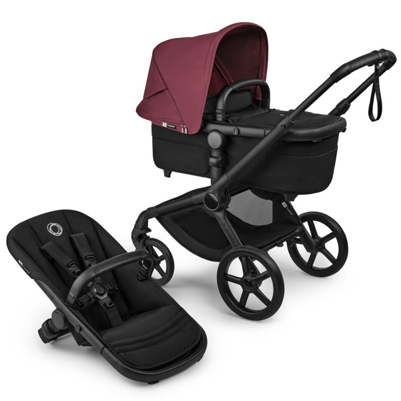 Bugaboo Fox 5 Renew - wózek wielofunkcyjny, zestaw 2w1 z opcją 3w1 i 4w1 | Black / Black - Dark Cherry